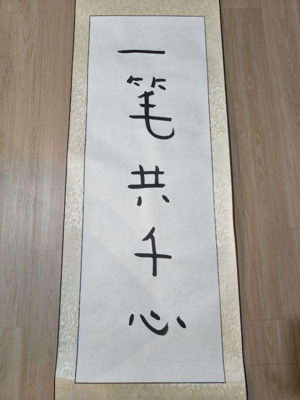 “一笔共千心”,一笔是我用心画的线,千心是大家一起的爱和心意。我们用画笔把快乐画出来,把爱心送给朋友、家人和世界。大家一起合作,就像彩虹一样,美丽又温暖。