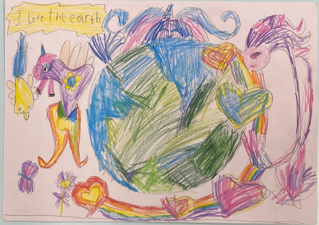我爱这个世界。美人鱼、独角兽和彩虹是送给世界的礼物。世界真美,我希望大家开开心心地生活在一起。
