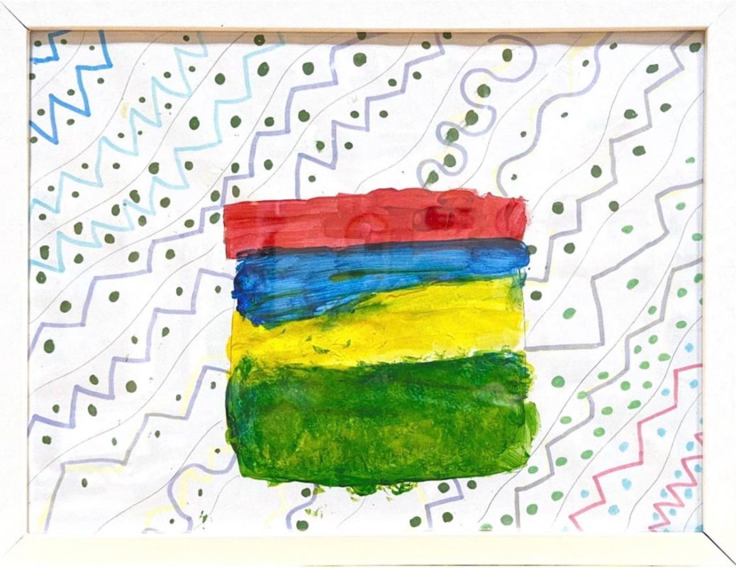 Description: This artwork, created by Nathaniel, is called Everything because it represents all the joy and creativity he wants to share with the world. The bright colours and playful patterns show how fun and expressive life can be. At the center is a present, symbolizing both a gift and the present moment. Nathaniel hopes it reminds everyone to enjoy life now and do what makes them happy.